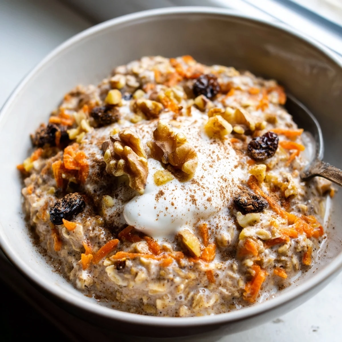 Prepare a wholesome breakfast the night before with these creamy oats featuring comforting carrot cake flavors. The combination of old-fashioned rolled oats, Greek yogurt, and almond milk creates a luscious base, while freshly grated carrots add natural sweetness and vibrant color. Warm spices like cinnamon, nutmeg, and ginger provide that classic carrot cake aroma we all love.