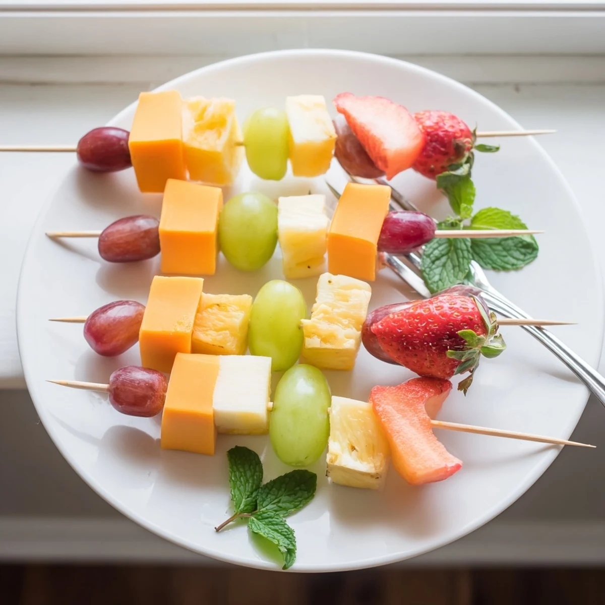 Firm fruits hold up best on skewers. Green and red grapes, strawberries, pineapple chunks, melon cubes, and kiwi slices are excellent choices. Avoid overly soft fruits like fresh berries or bananas that may slide off or become mushy when threaded.