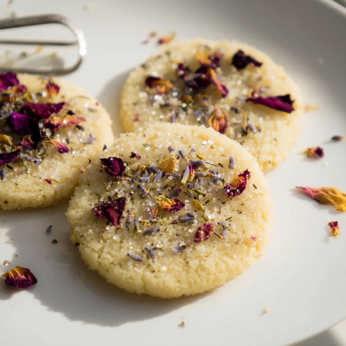 Rose petals, lavender buds, and violets are classic choices that pair beautifully with the buttery dough. You can also use pansies, chamomile flowers, or calendula petals. Always source flowers specifically labeled as edible and organic to ensure they're safe for consumption.